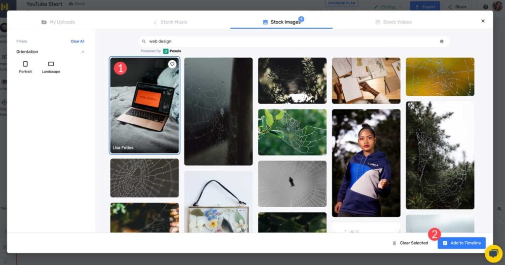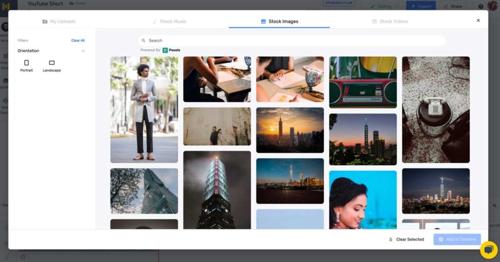 That said, it’s more than just a voice generator. It can help you create videos, too. It’s not a traditional AI video generator where you generate a video from a text prompt. Instead, it provides millions of stock music, image, and video assets that you can use to create videos for the web, social media, marketing or training videos, and more.